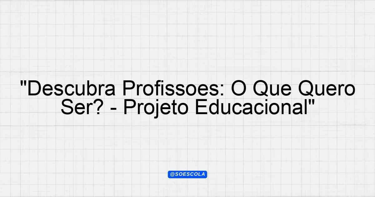Continue lendoProjeto: “Profissões: O Que Quero Ser?” 1. Objetivo do Projeto O projeto “Profissões: O Que Quero Ser?” tem como principal