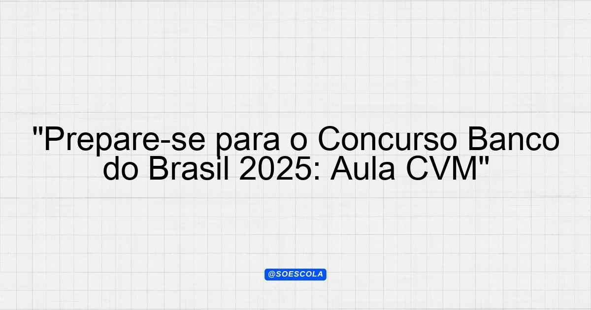 Continue lendo📝 Resumo do Vídeo Visão Geral No vídeo intitulado “Aula 05: CVM – Concurso Banco do Brasil 2025”, o educador