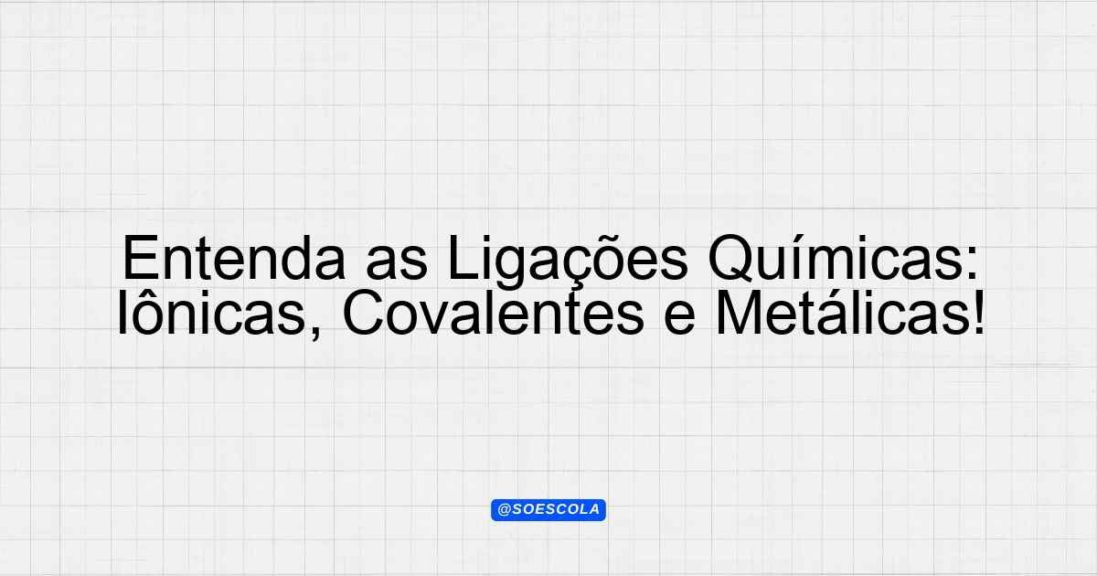 Continue lendo📝 Resumo do Vídeo Visão Geral O vídeo “Ligações Químicas”, produzido pelo canal Brasil Escola Oficial, explora os diferentes tipos
