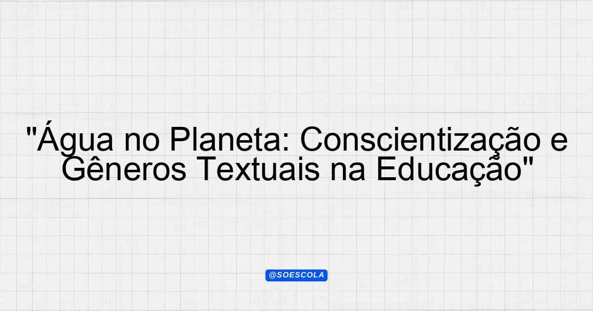 Continue lendo1. Apresentação da Sequência O tema central desta sequência didática é “Água no Planeta e Gêneros Textuais”. A justificativa para