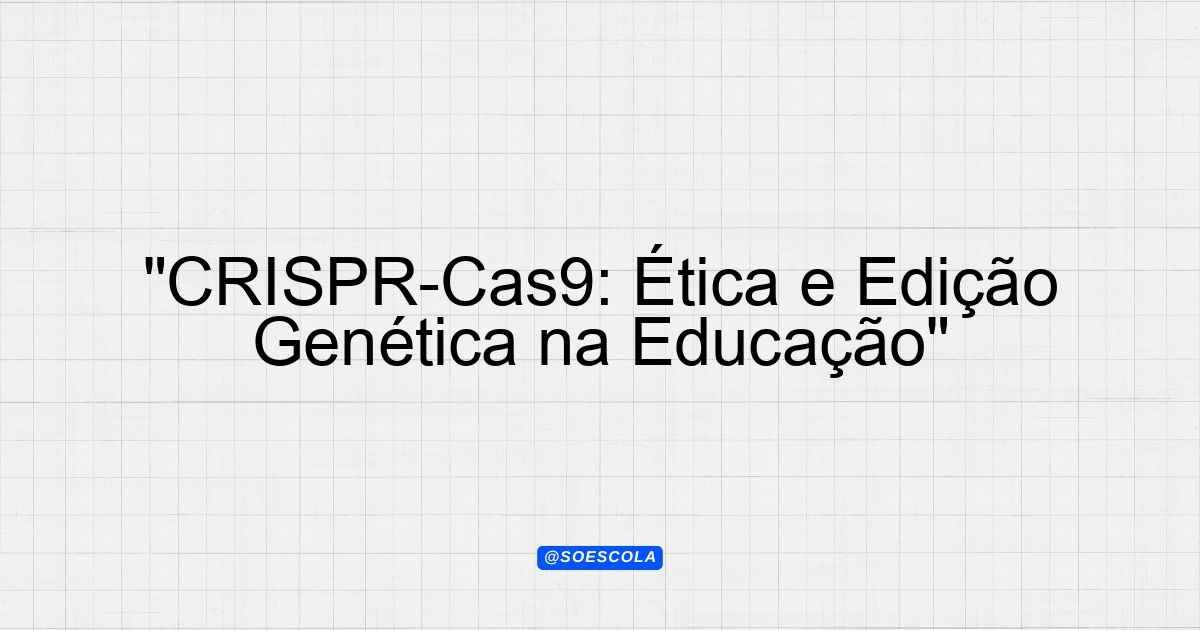 Continue lendo1. Apresentação da Sequência O tema central desta sequência didática é o CRISPR-Cas9, uma tecnologia revolucionária de edição genética. A