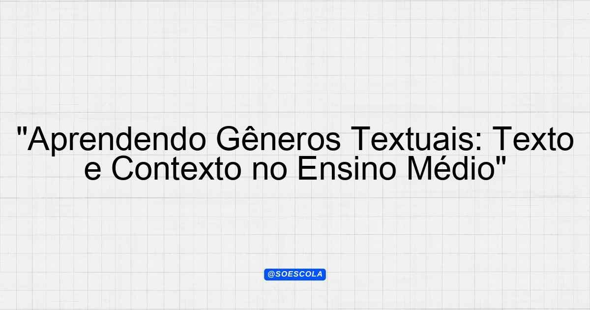 “Aprendendo Gêneros Textuais: Texto e Contexto no Ensino Médio”