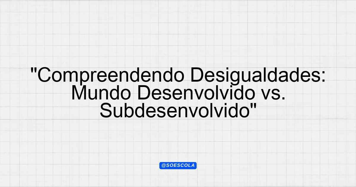 Continue lendo1. Apresentação da Sequência O tema central desta sequência didática é a compreensão das diferenças entre o mundo subdesenvolvido e