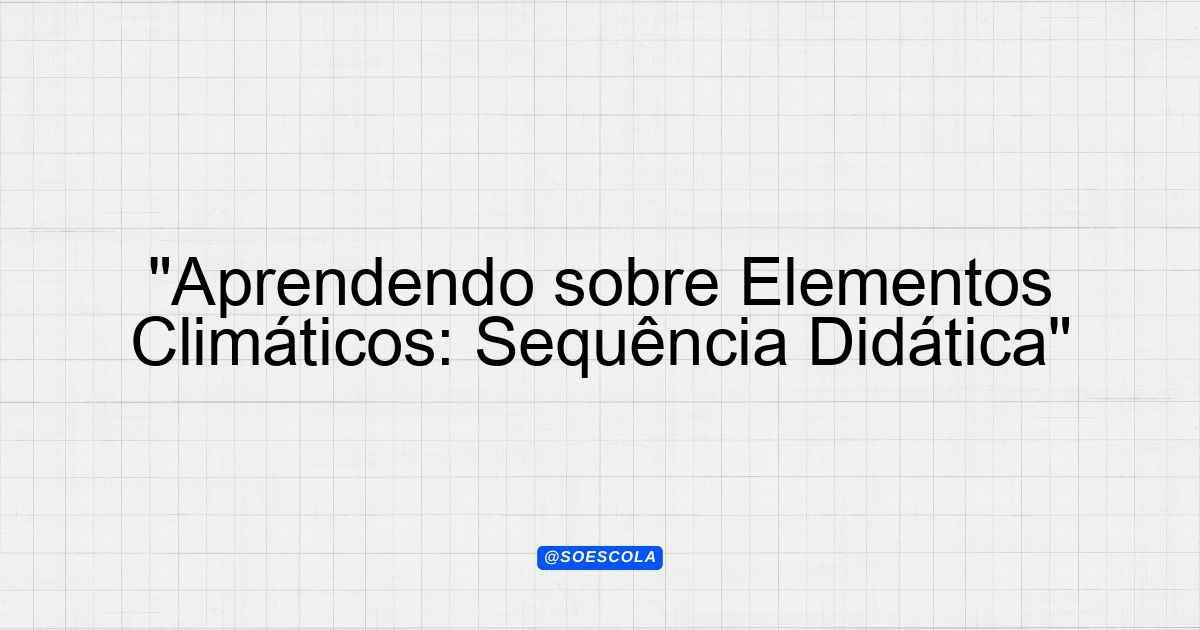 Continue lendo1. Apresentação da Sequência O tema central desta sequência didática é “Elementos Climáticos”, que abrange o estudo dos diferentes fatores