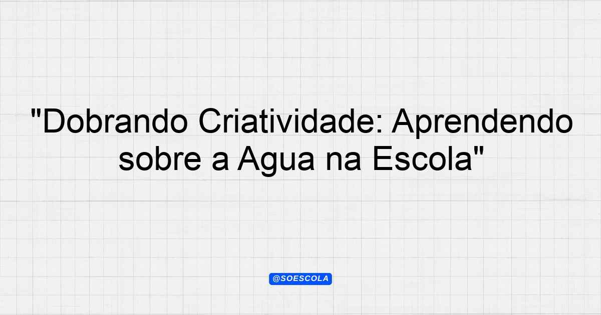 “Dobrando Criatividade: Aprendendo sobre a Água na Escola”