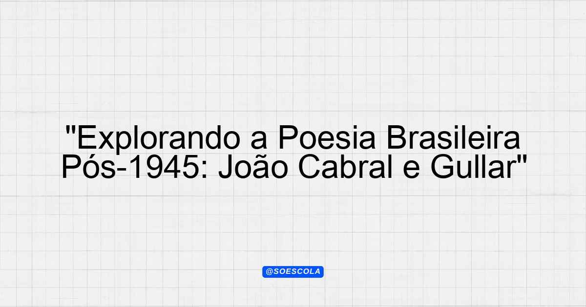 “Explorando a Poesia Brasileira Pós-1945: João Cabral e Gullar”