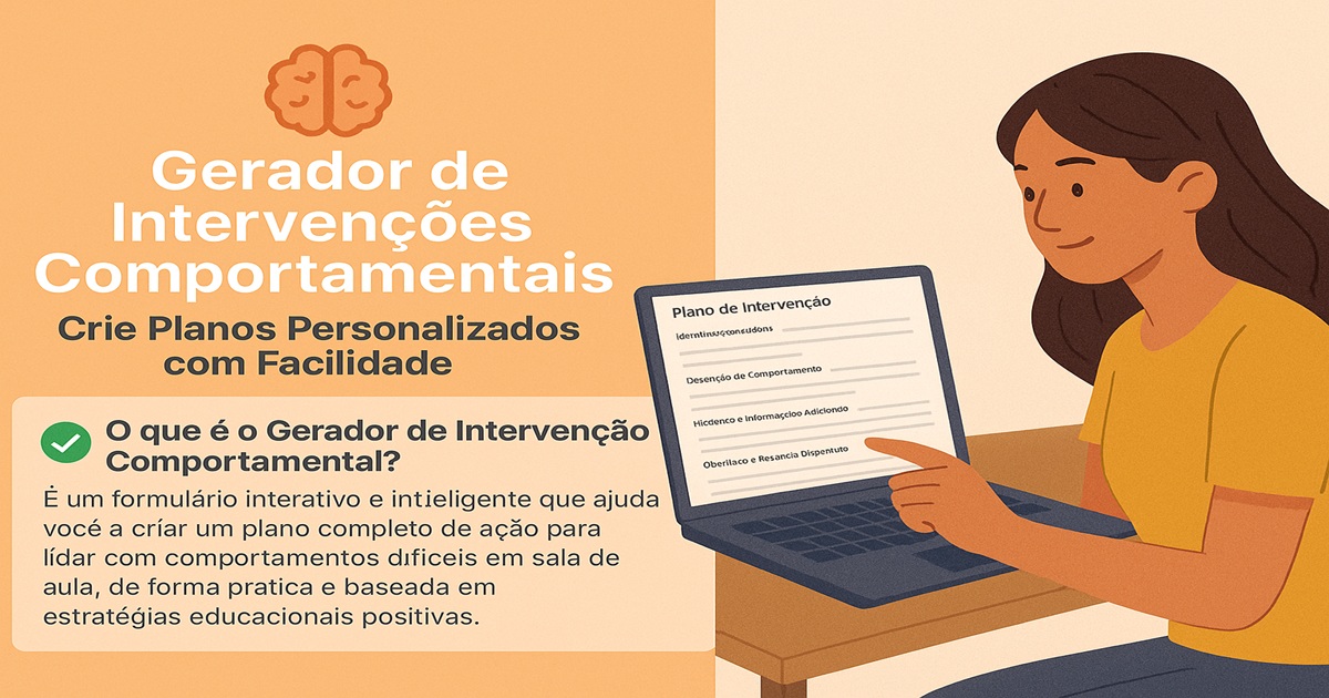 Você já se deparou com um aluno que apresenta comportamentos desafiadores e sentiu dificuldade em saber qual a melhor estratégia para ajudar? O Gerador de Sugestões de Intervenção Comportamental é a ferramenta ideal para professores e educadores que desejam agir com clareza, empatia e assertividade em sala de aula.