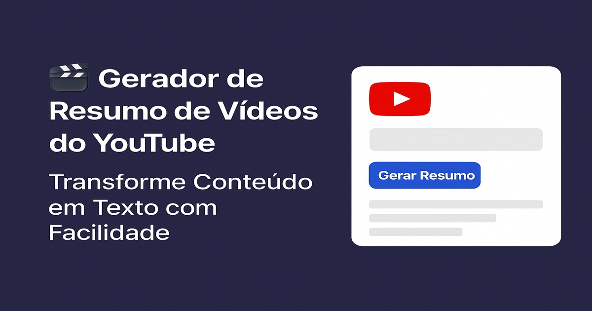 🎬 Gerador de Resumo de Vídeos do YouTube – Transforme Conteúdo em Texto com Facilidade