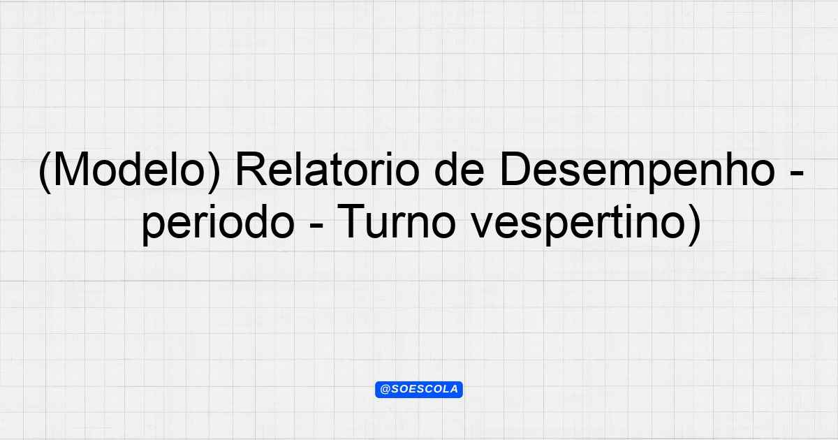 (Modelo) Relatório de Desempenho – José Miguel dos Santos (Segundo período – Turno vespertino)