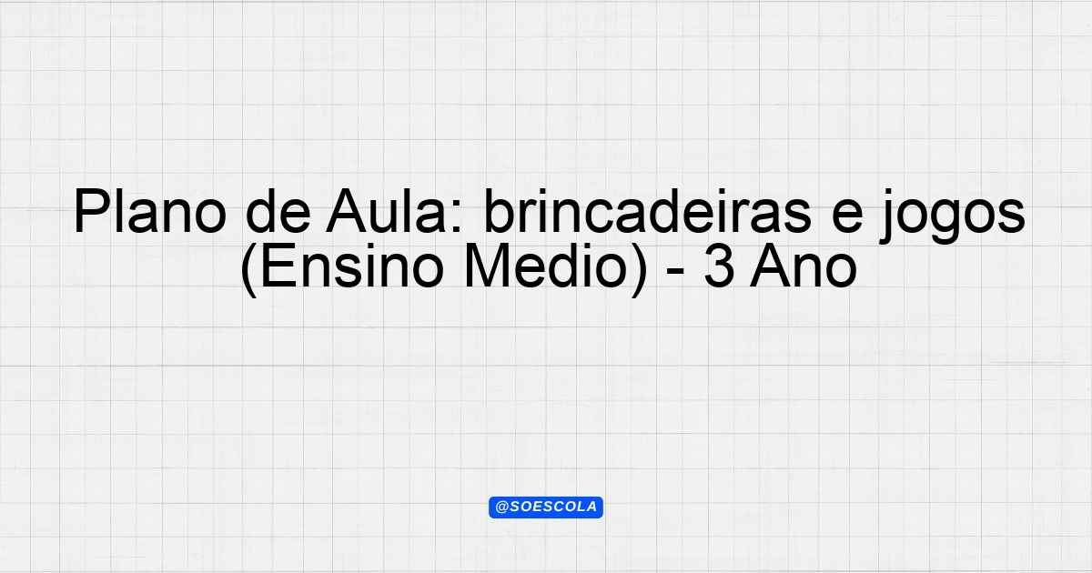 Plano de Aula: brincadeiras e jogos (Ensino Médio) – 3º Ano