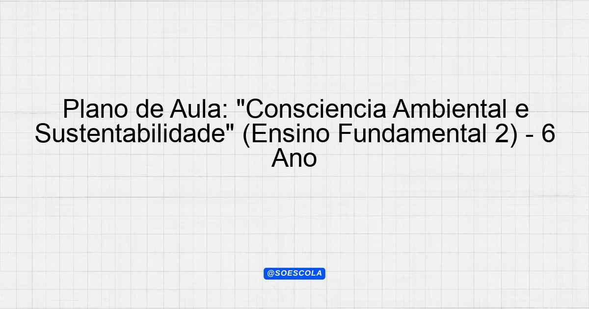 Plano de Aula: “Consciência Ambiental e Sustentabilidade” (Ensino Fundamental 2) – 6º Ano
