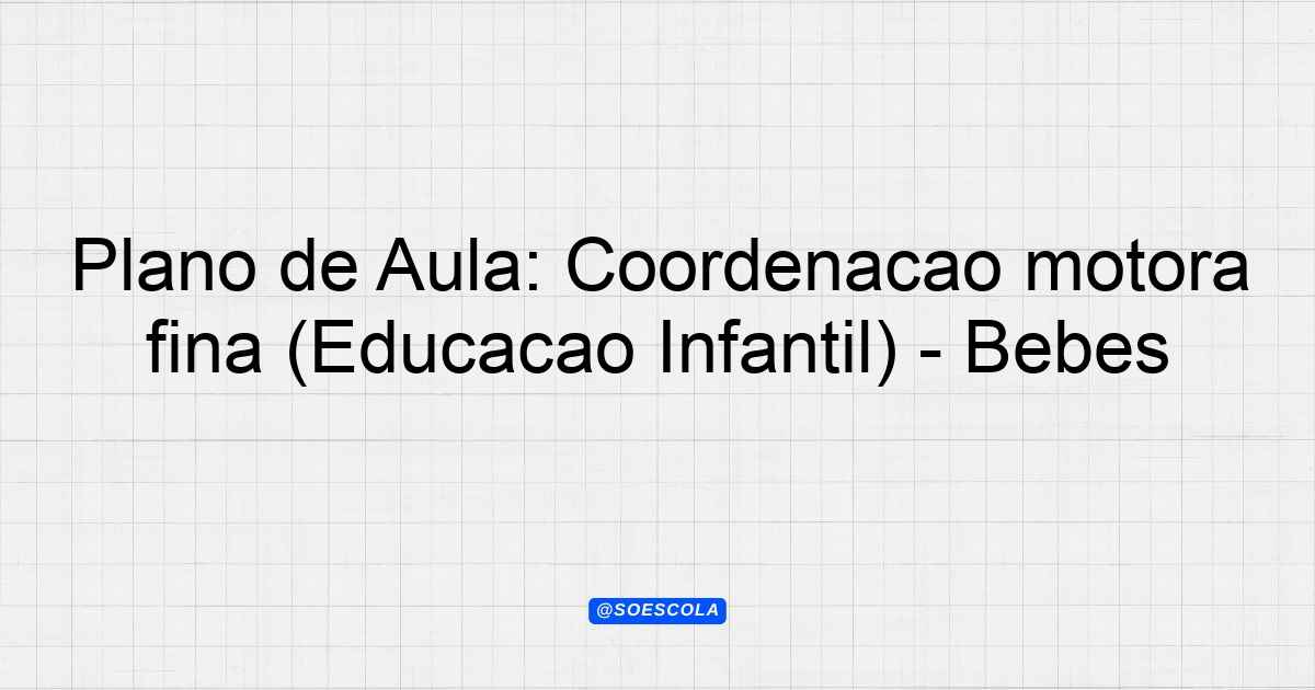 Plano de Aula: Coordenação Motora Fina (Educação Infantil) – Bebês