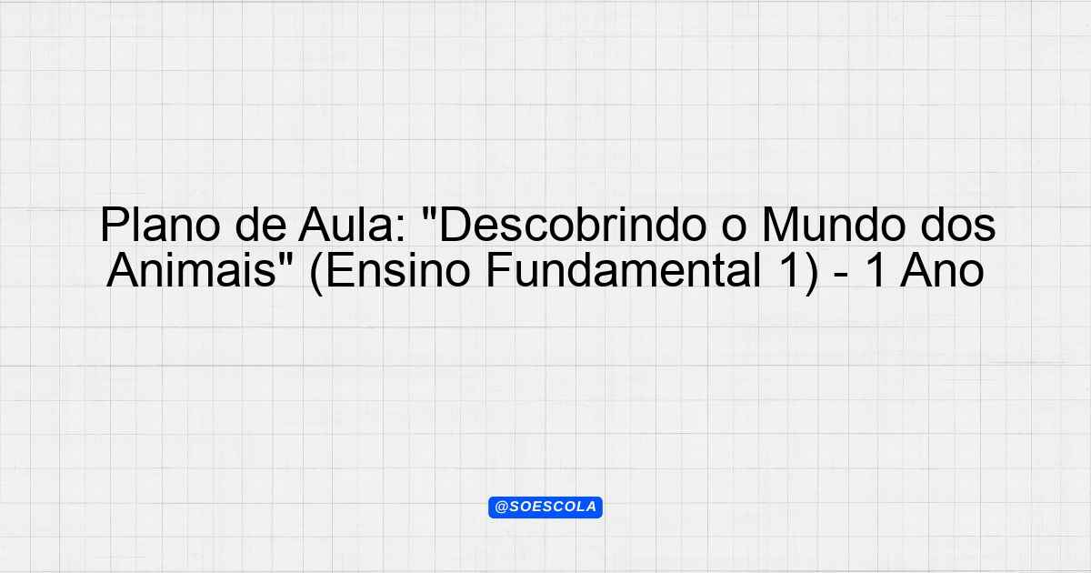 Plano de Aula: “Descobrindo o Mundo dos Animais” (Ensino Fundamental 1) – 1º Ano