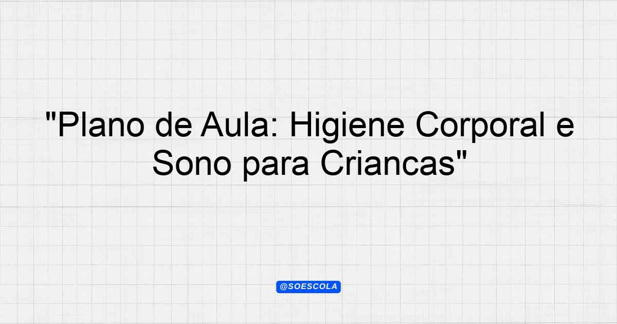 “Plano de Aula: Higiene Corporal e Sono para Crianças”