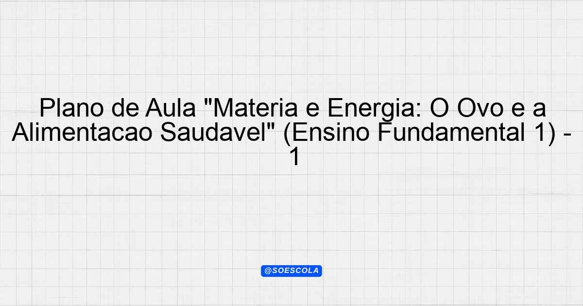 Plano de Aula “Matéria e Energia: O Ovo e a Alimentação Saudável” (Ensino Fundamental 1) – 1º Ano