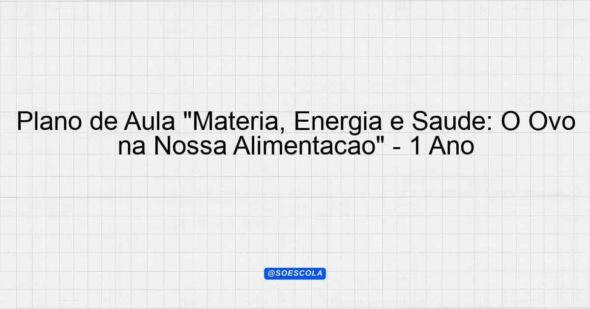 Plano de Aula “Matéria, Energia e Saúde: O Ovo na Nossa Alimentação” – 1º Ano