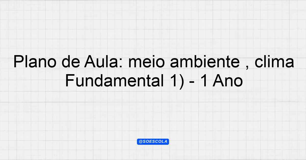 Plano de Aula: MEIO AMBIENTE, CLIMA E SUSTENTABILIDADE (Ensino Fundamental 1) – 1º Ano