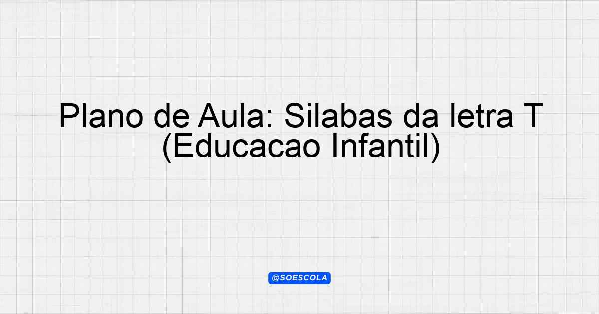 Plano de Aula: Sílabas da letra T (Educação Infantil)