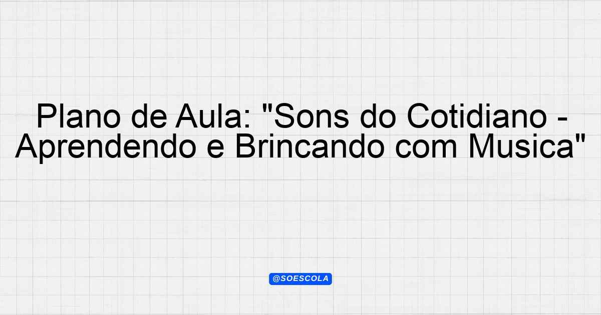 Plano de Aula: “Sons do Cotidiano – Aprendendo e Brincando com Música”