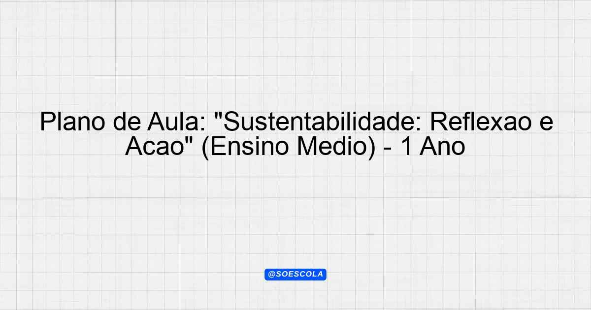 Plano de Aula: “Sustentabilidade: Reflexão e Ação” (Ensino Médio) – 1º Ano