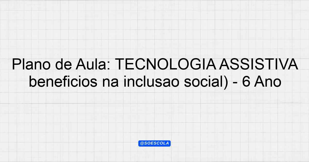 Plano de Aula: TECNOLOGIA ASSISTIVA (sua importância, aplicabilidade e benefícios na inclusão social) – 6º Ano