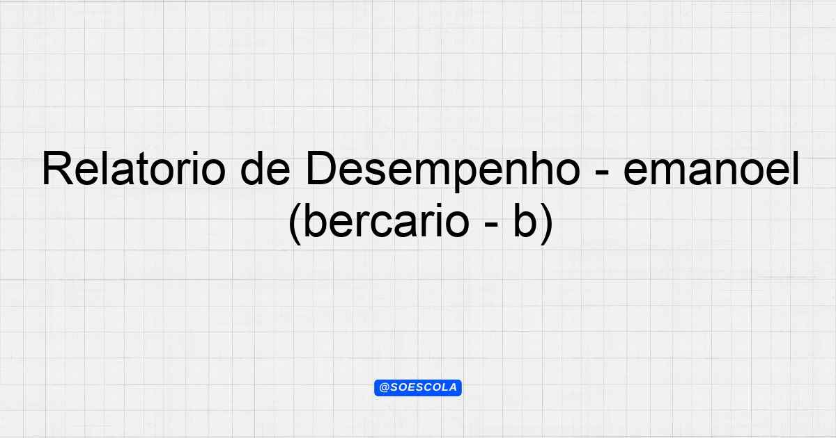 Nesta postagem, vamos disponibilizar um relatório de desempenho para o aluno emanoel, da berçário, turma b, da escola donilia, sob a responsabilidade do(a) professor(a) lanna.