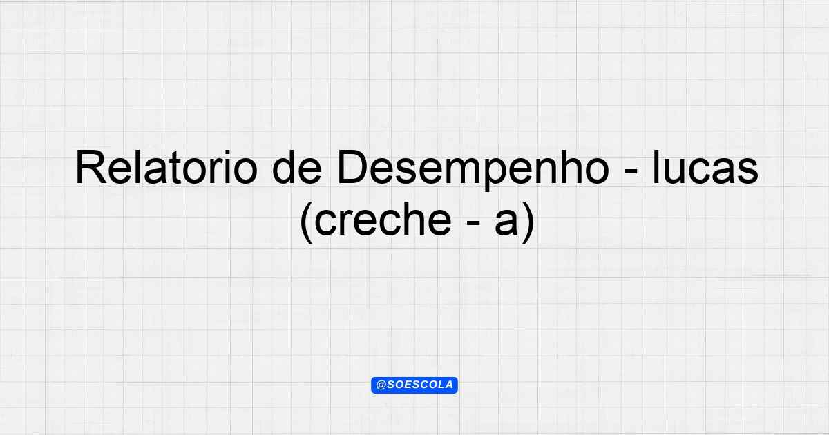 Nesta postagem, vamos disponibilizar um relatório de desempenho para o aluno lucas, da creche, turma a, da escola ab, sob a responsabilidade do(a) professor(a) paulo.