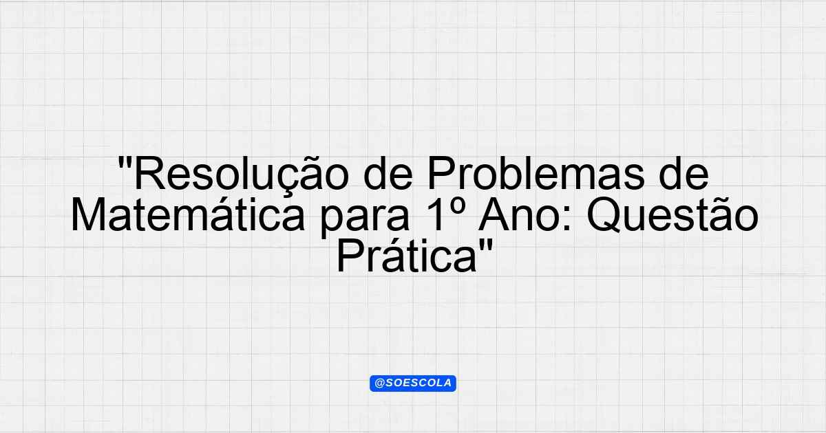 “Resolução de Problemas de Matemática para 1º Ano: Questão Prática”